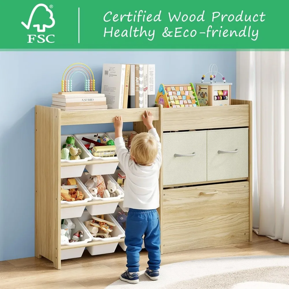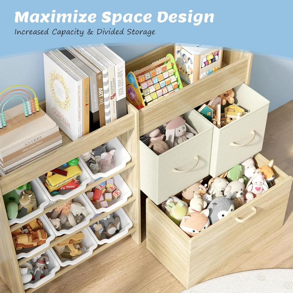 Inspired by Montessori principles, this storage shelf encourages kids to access and organize their toys independently, helping develop responsibility and organization skills. The sturdy wooden construction ensures durability and long-lasting use. Smooth edges and child-friendly design make it safe for toddlers and young children.
